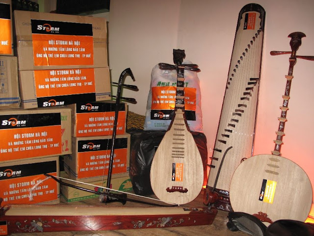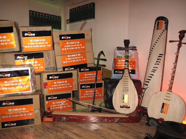 Chúng tôi biết do thời gian quyên góp không quá dài, như vậy đồng nghĩa với việc lượng tiền và vật dụng quyên góp cũng không quá nhiều được. Xuất phát từ thực tiễn đó, một lần nữa chúng tôi liên hệ với nhà Chùa để biết ngoài nhu cầu về nhu yếu phẩm hàng ngày thì với các em điều gì đem lại niềm vui trong cuộc sống. Nhà chùa có nói “các em ở đây là khuyết tật, nên cũng không học tập theo cách thông thường như giấy vở, sách báo đâu,…hiện nay, các thầy giáo dạy nhạc đang chuẩn bị thành lập một đội nhạc đàn dân tộc nhưng chưa có dụng cụ anh chị ah”. Vâng, chúng tôi thật lấy lòng cảm kích trước tấm lòng của các sư đã cưu mang giúp đỡ các em. Với ước mong góp phần nhỏ để đem lại niềm vui cho các em, chúng tôi đã xin được số điện thoại của thầy Cang (0935.444.275) – Thầy giáo dạy nhạc cho các em nhỏ của nhà Chùa -. Thầy đã muốn thành lập dàn nhạc đã lâu nhưng chưa có điều kiện, thầy rất muốn có 3 cây đàn: đàn tranh, đàn nhị và đàn tỳ bà. Chúng tôi, những người không biết gì về âm nhạc đã nhờ đến sự giúp đỡ của một số chuyên gia về nhạc dân tộc thì được biết để thành 1 dàn nhạc dân tộc thì 5 loại đàn: đàn tranh, đàn nhị, đàn tỳ bà, đàn nguyệt và đàn bầu!
